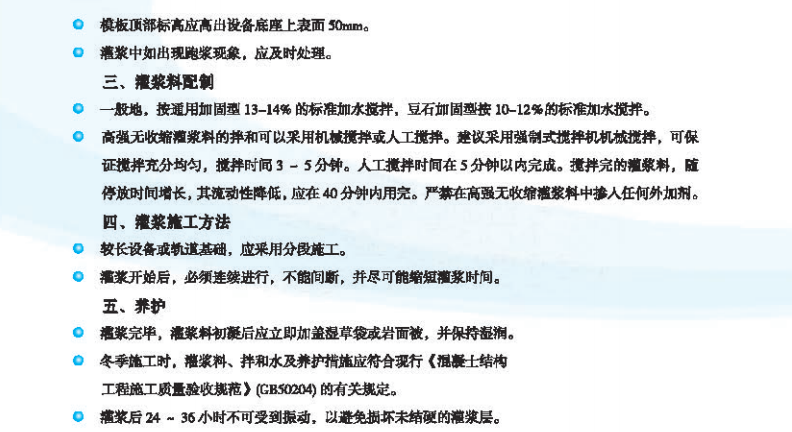 3、灌漿后24-36小時不可受到振動,以避免損壞未結(jié)硬的灌漿層。