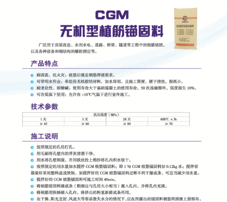 您的位置:首頁 > 產(chǎn)品展示 > > CGM無機植筋錨固料